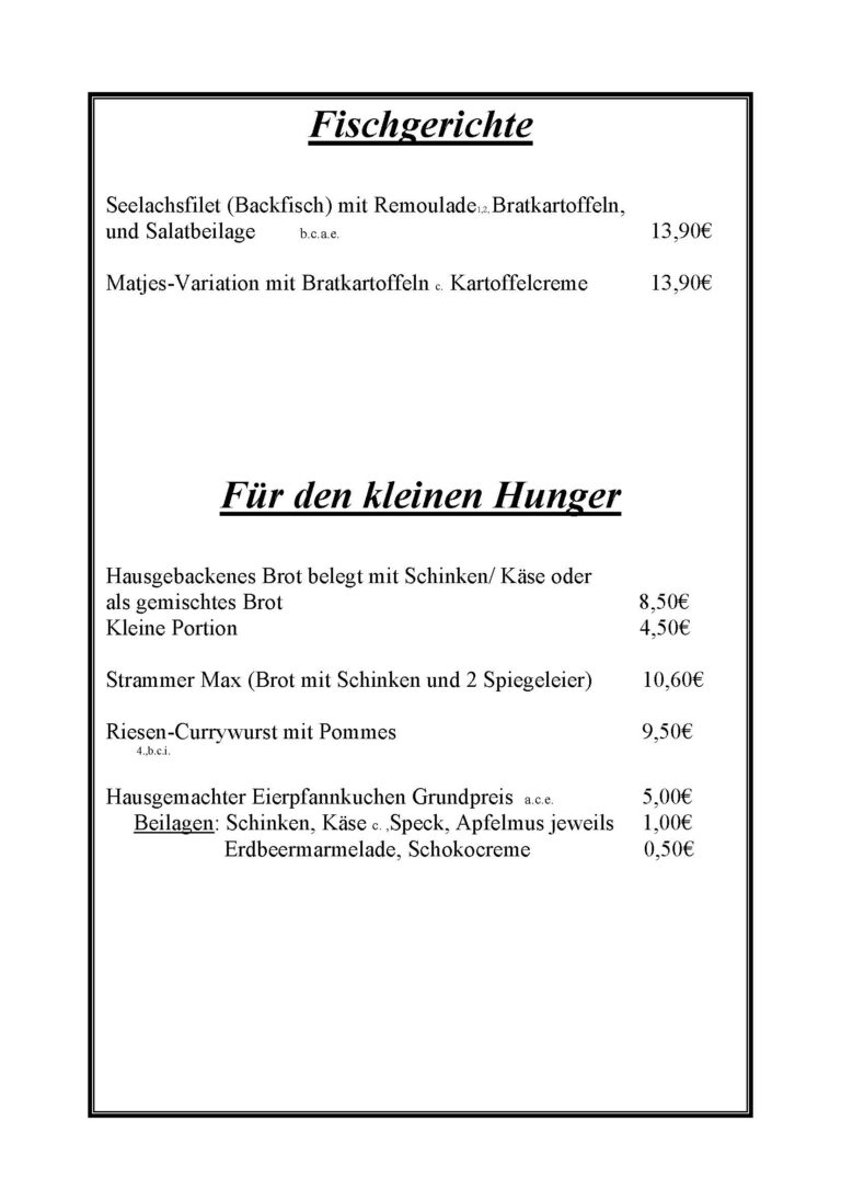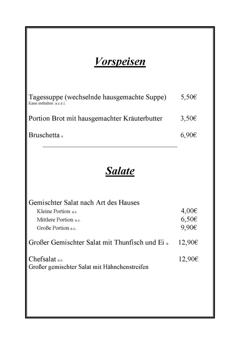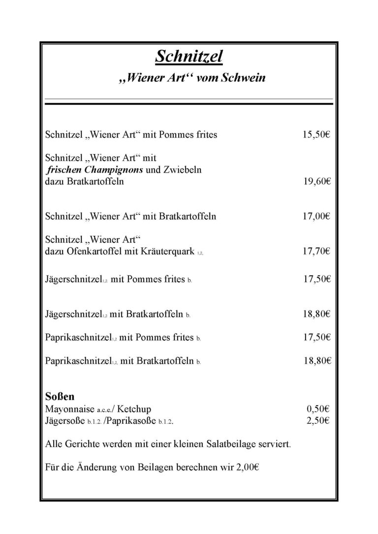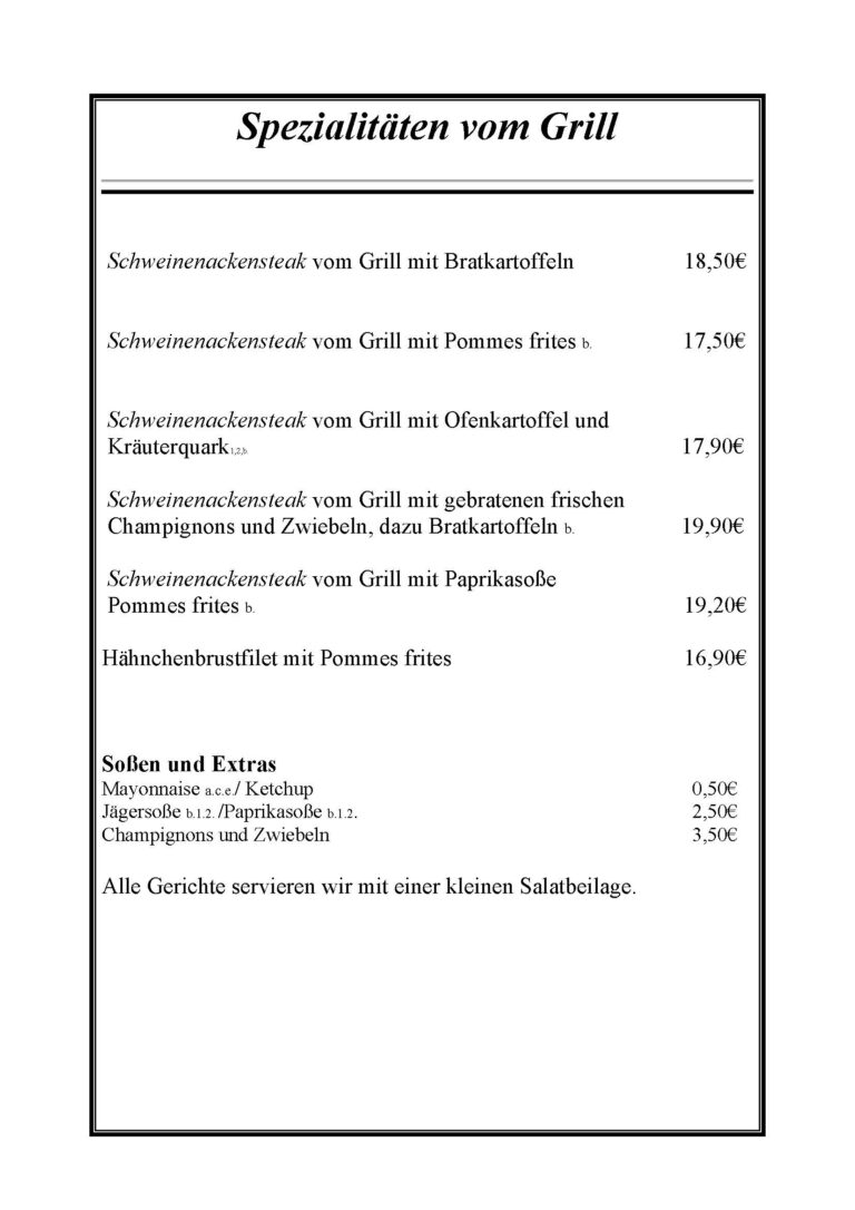Die Angaben auf unseren Speisekarten sind ohne Gewähr!